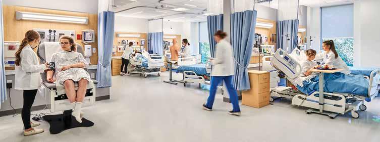 Gail Byerlee ’27, a nursing major, agrees “It’s helpful to have the students playing the family members,” she said “It’s great to practice balancing communication with the visitors while caring for the patient ” While student nurses are developing their medical and communication skills, student actors are gaining valuable exposure to a field that they might not have known existed �
