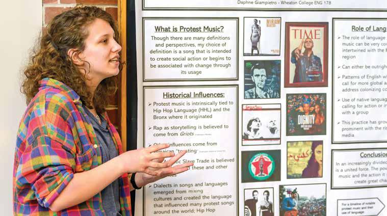 Daphne Giampietro ’25 explains her study of protest music during Academic Festival.