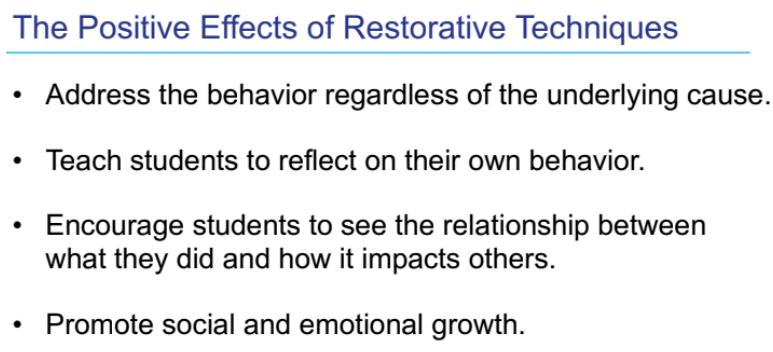 ○ Create a representative group to develop a district framework for student discipline and improved student attendance, including, but not limited to: consistency in expectations and consequences, communication procedures, restorative practices and proactive/prevention measures
