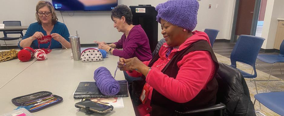 This group meets every week to work on a variety of craft projects for the community.