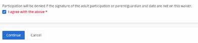 Step 6: Complete waiver form by checking on the waiver agreement box and select “Continue”.