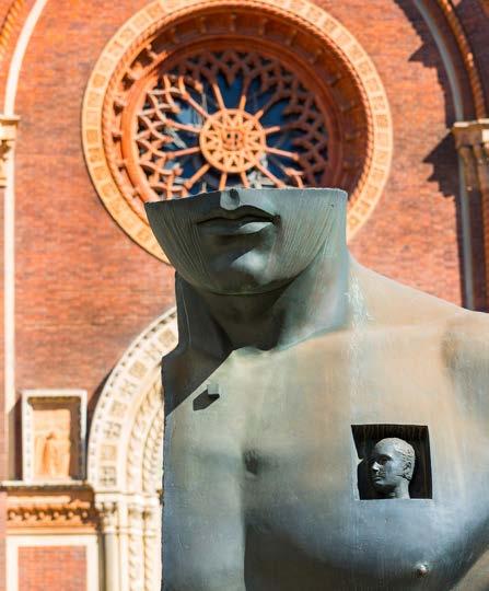 In the heart of Brera, contemporary art is in dialogue with that of the past in the large bronze statue of classical inspiration designed by Igor Mitoraj. The church of the Carmine in the background with the bust of the Great Tuscan in front of it is an image with a powerful visual impact.
