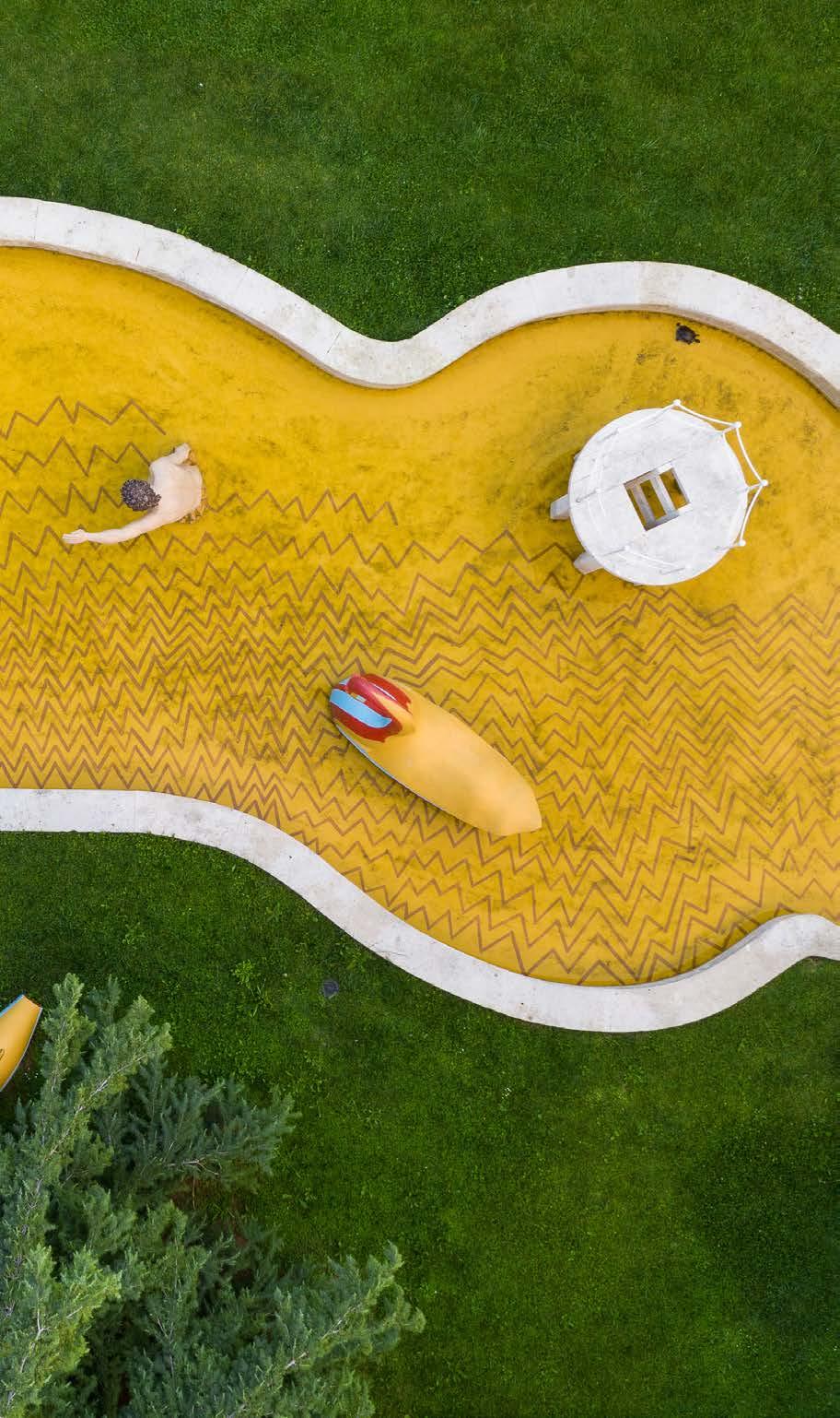 Two swimmers, a swan, a platform, a cabin and a fountain stand out, immersed in a small swimming pool, in the heart of the park around the Triennale Milano. The work, created by Giorgio de Chirico, refers to the artist’s childhood in Greece.