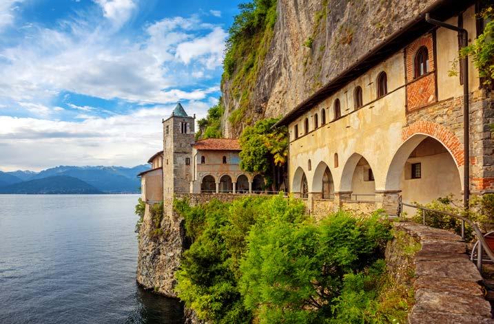 According to tradition, the hermitage of Santa Caterina del Sasso (75 km from Milan) was founded in the 12th century by Alberto Besozzi, a rich local merchant who, after having survived a heavy storm while crossing Lake Maggiore, decided to give up his worldly goods and live the life of a hermit. The particular appeal of this hermitage (which contains important frescoes) is mostly due to its astonishing location, perched on a rocky overhang with a sheer drop down to the Lake. www.santacaterinadelsasso.com
