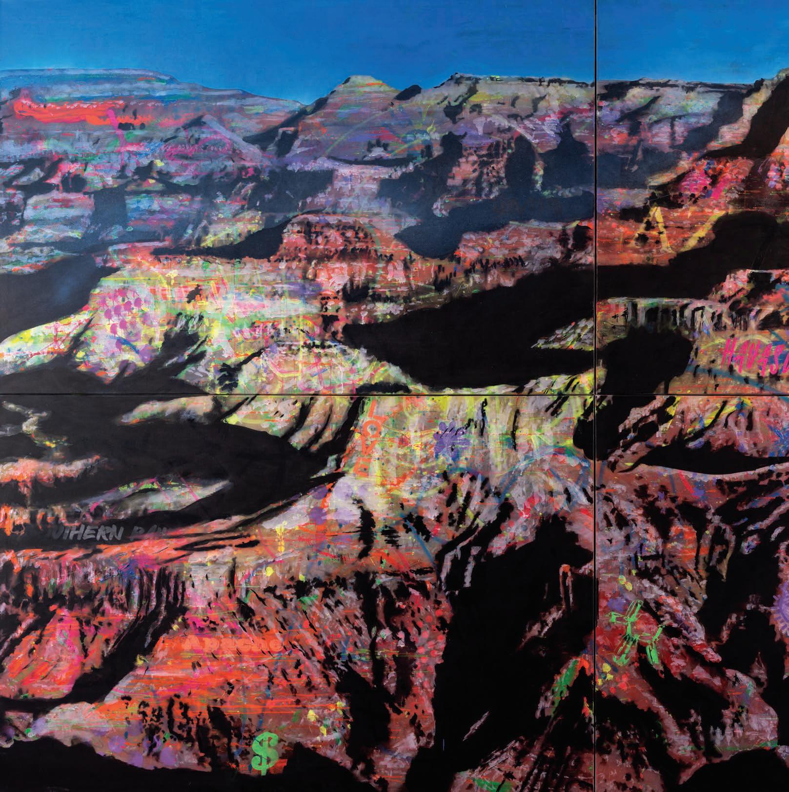 BY MICHELLE GLICKSMANON THE COVER AND INSIDE FRONT COVER “WIKATATA” 2022, by AtZ Mixed media painting on canvas American Fine Art, Inc. 96” x 144”