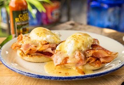 Shrimp, steak, onions, bell peppers, eggs, jalapeños, cheddar cheese, Southwest Sauce & avocado crème