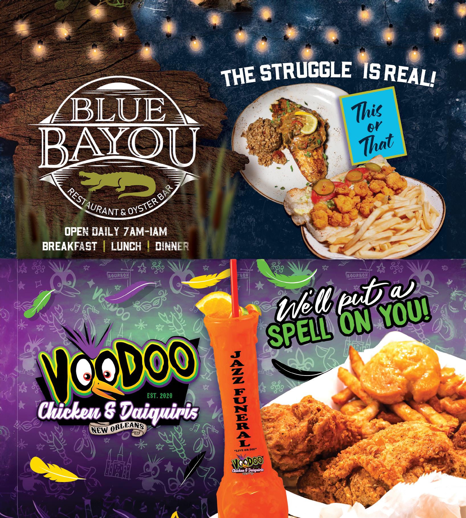 Home of the famous 10 oz. Swamp Burger and many more hearty options including steak and wings, the Swamp Room is a perfect spot to dine, drink, and watch the big game while in Metairie.