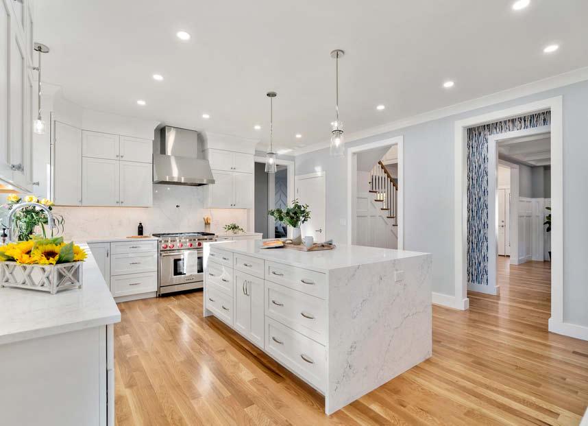 Stunning new construction Dutch Colonial features three levels of living space, an airy entryway to a craftsman formal living room, a dining room with a coffered ceiling, and a wet bar. The brightly lit family room with a fireplace and custom built-ins leads to an inviting deck & a lovely backyard patio. A modern chef's kitchen offers a large center island with undercounter seating, stainless steel Wolf appliances, an oversized French door Thermador refrigerator, custom-built white cabinetry, and pristine quartz countertops that complete the elegant look and feel of the kitchen. A bedroom, a full bath, and a half bath finish the main level. The second level boasts a beautiful primary suite with a gas fireplace, two walk-in closets, a spa bath, and a steam shower. Four additional bedrooms, two full baths, and a conveniently located laundry room grace the second floor. The finished lower level offers a gracious family room/game area, an additional bedroom, and a full bath. Its close proximity to the bustling town center and highways make this a wonderful place to call home!