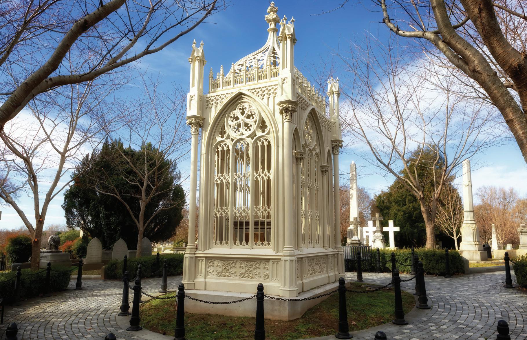 This elaborate Gothic Revival cast iron cage marks the gravesite of President James Monroe in Hollywood Cemetery in Richmond, Virginia. Often called “The Birdcage,” the tomb is made of cast iron.