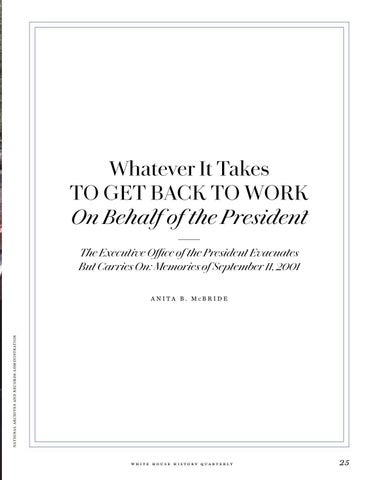Whatever It Takes TO GET BACK TO WORK On Behalf of the President The Executive Office of the President Evacuates But Carries On: Memories of September 11, 2001