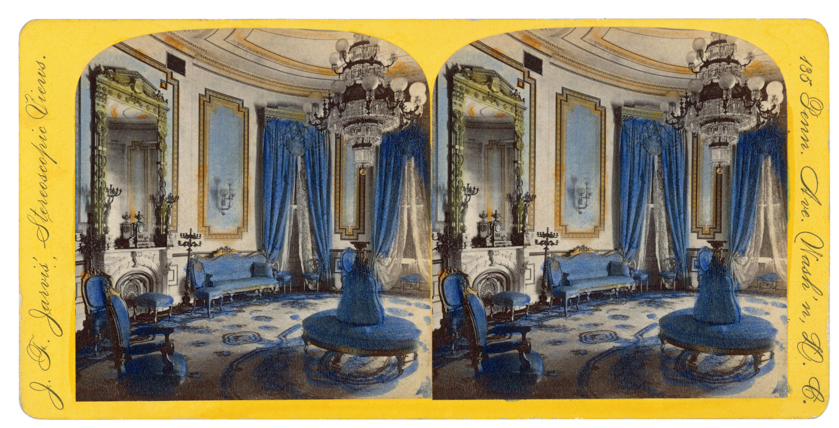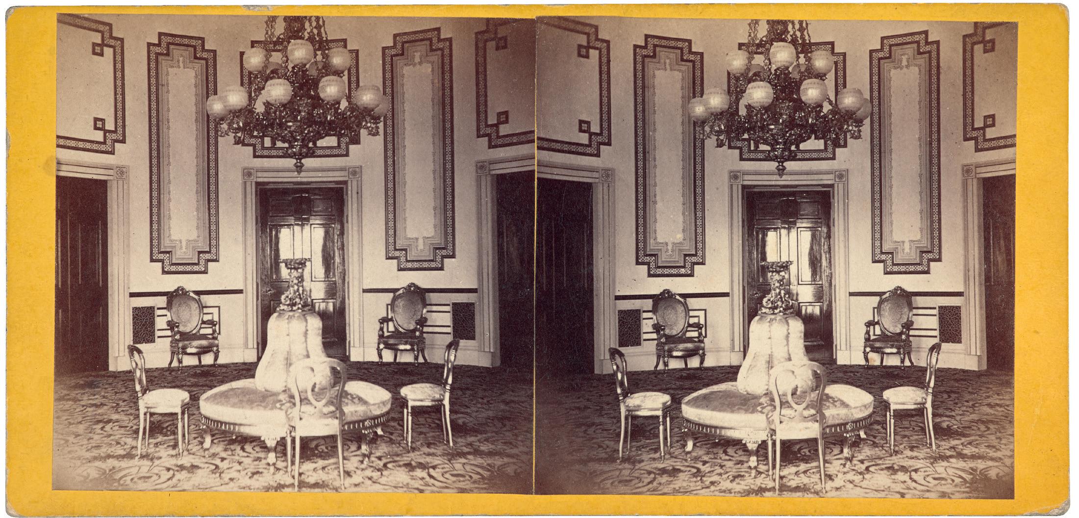 A detail of a stereoview of the East Room taken in about 1867 by the prolific photographer George D. Wakely.