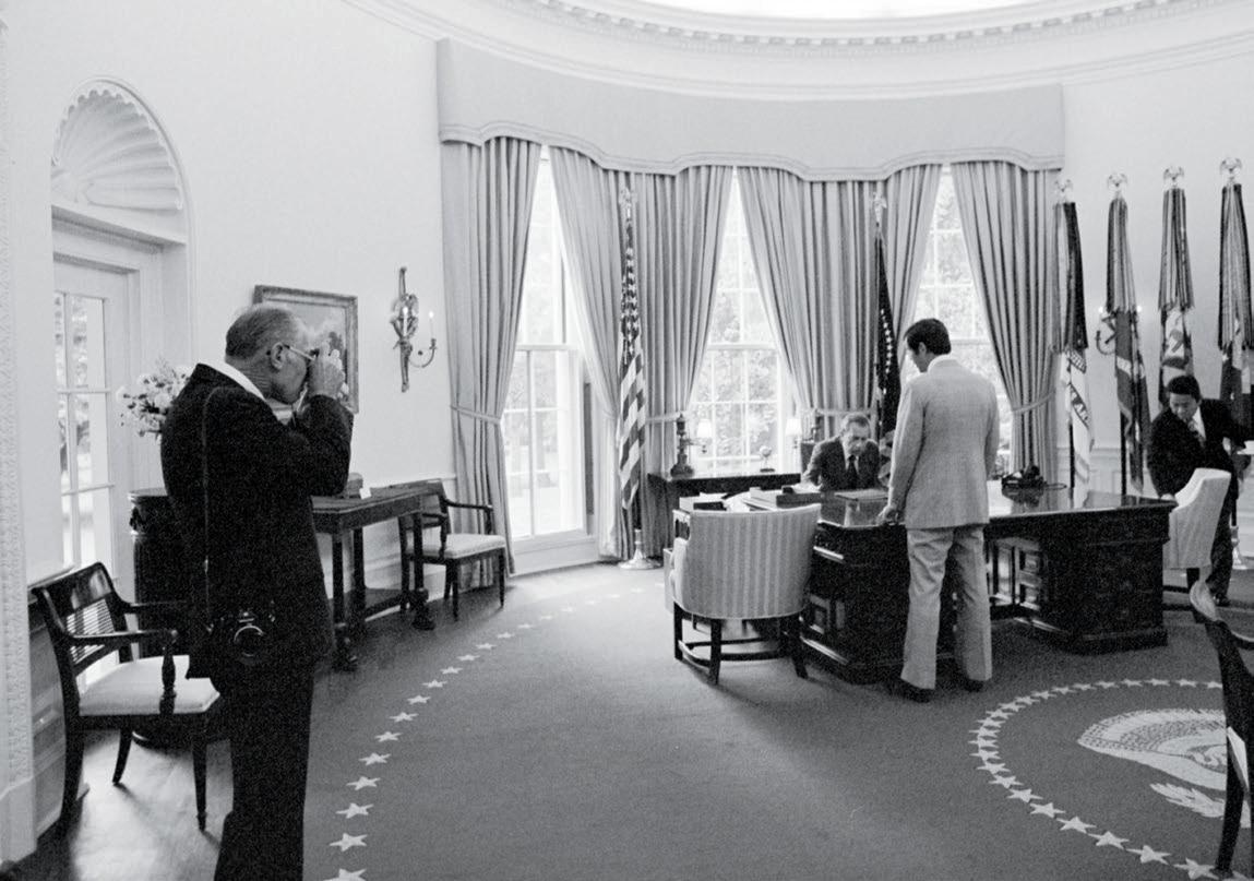 With this issue we also go behind the camera to learn more about the inspiration, access, and even constraints on the photographers who have covered the president at work. Susan Ford Bales provides the moving backstory that led her to use photography to “ignore the frustrations and embrace” all of her unique experiences as the president’s daughter living in the White House. The stories of the “ultimate insiders” are revealed by Kenneth T. Walsh, who profiles the work of all those who have held the title Official White House Photographer. Mary Jo Binker profiles of one of them—Ollie Atkins, who dutifully followed Richard M. Nixon’s “six and out rule” yet had the foresight to capture the president’s spontaneous embrace with his daughter during his final days in office.