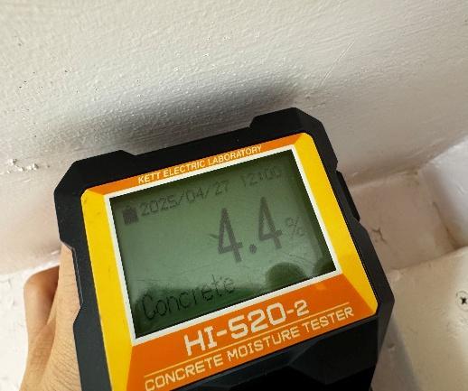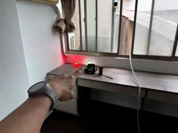高周波混凝土水分計:日本KETT台灣區總代理/中燦科技有限公司、校驗報告CT-114020401、校驗日期2025年02月04日 瑞典FLIR T530 42° 紅外線熱像測溫儀:FlIR台灣總代理、校正單位TAF/IPE、校正報告0207T181、校正日期2025年02月08日 德國BOSCH D-tect 200c 雷達、HMI水管探測儀:Robert Bosch GmbH、出廠日期2023年04月08日