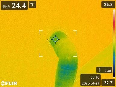 開口持續試水30分鐘,檢測結果: 熱像儀溫差異常