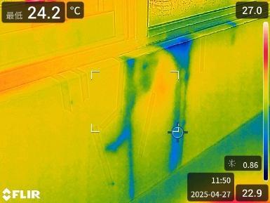 防水層持續試水30分鐘,檢測結果: 熱像儀溫差正常