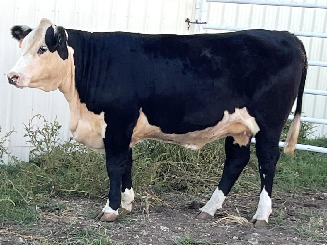 This traditionally looking female has a tremendous weaning ratio of 119 and 7 out of 9 growth and maternal traits she is in the top 40% or better of the breed. Top 30% of the breed for TI. She sells open, breed her to the bull of your choice. 61
