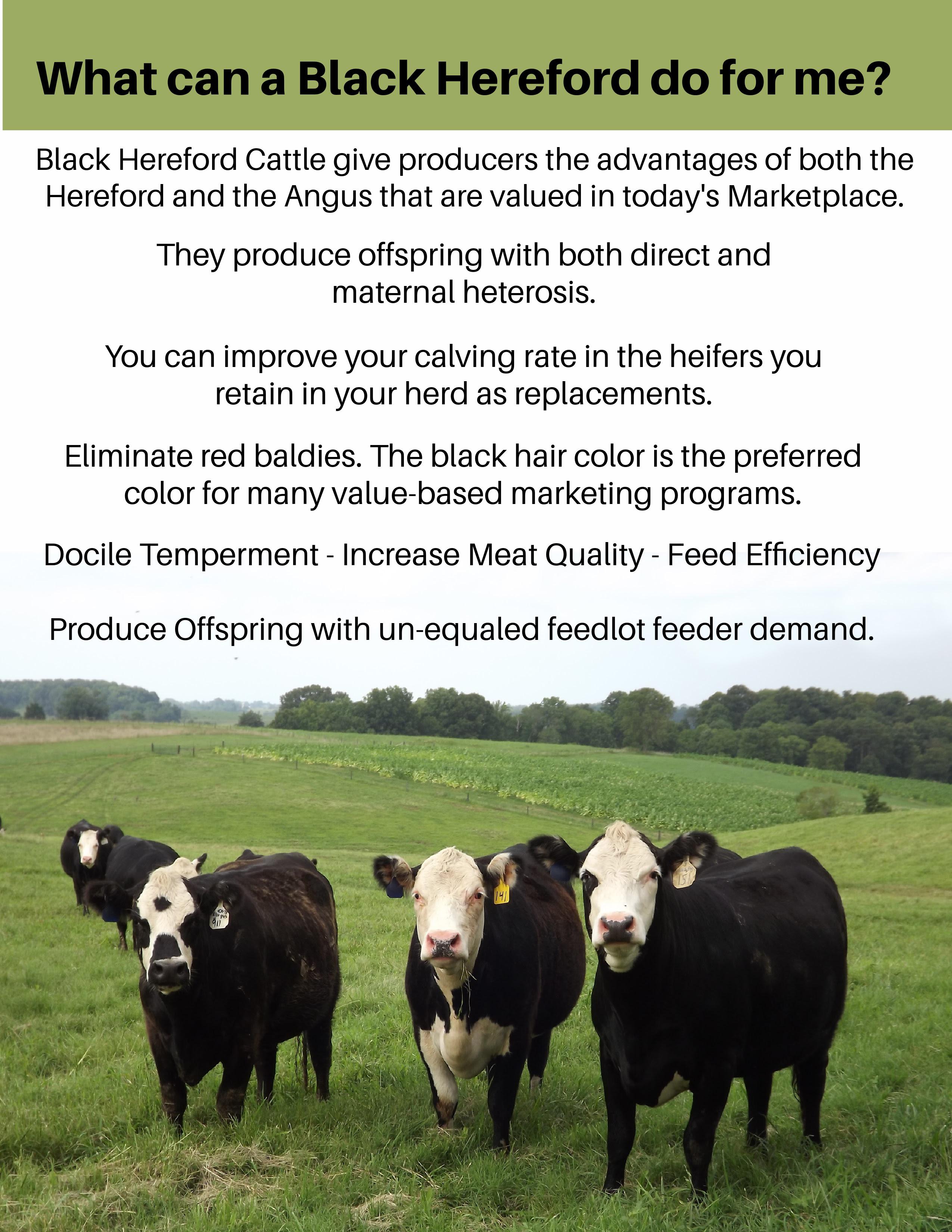 His sire C Triple your Miles has done more to put thickness and spring of rib in Black Hereford cattle than any other bull to date. His grand sire on the dam’s side needs no introduction. Y702 is one of the highest accuracy EPD bulls in the breed. Pedigrees and proven records like this don’t come around every day. His stay ability EPD ranks in the top 10% of the breed. One of the most important EPDs to notice that will make you money. He is a sure-fire winner that will do great things in any herd.