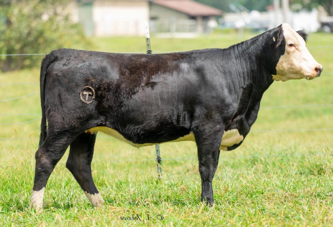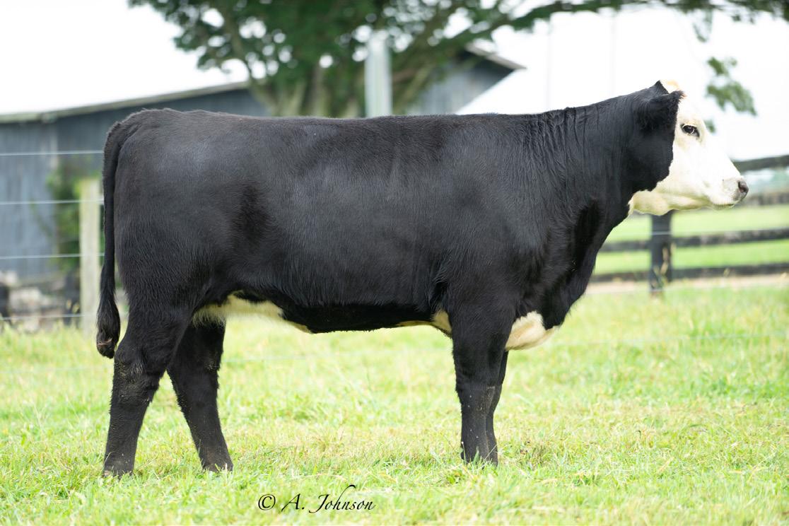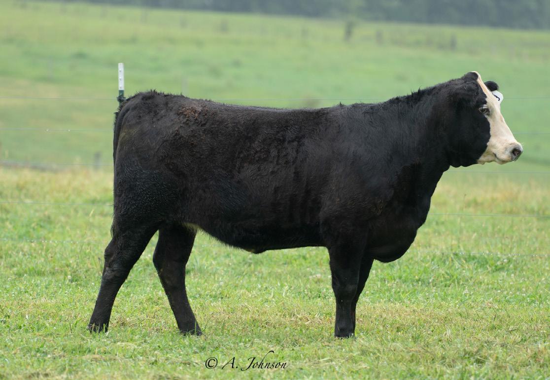 Her grandsire is the Iconic Solomon bull. She has lots of spring of rib and volume. Heifers made like her is what one wants in a working female. She ranks in the top 35% for CED top 20% for BW top 30% for CEM, STAY-ABILITY, API AND TI and top 15% for MARBLING. She sells ready to breed to the bull of your choice.