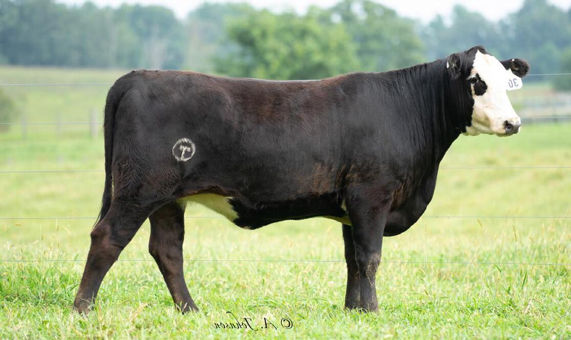 Her sire is the well know Griffin bull. If you notice her, pedigree is loaded with Triple T Bloodlines. She is a big bone heifer with the capacity needed to perform in the pasture. She ranks in the top 5% of the breed for milk, top 15% for CED. She is ready to breed to the bull of your choice.