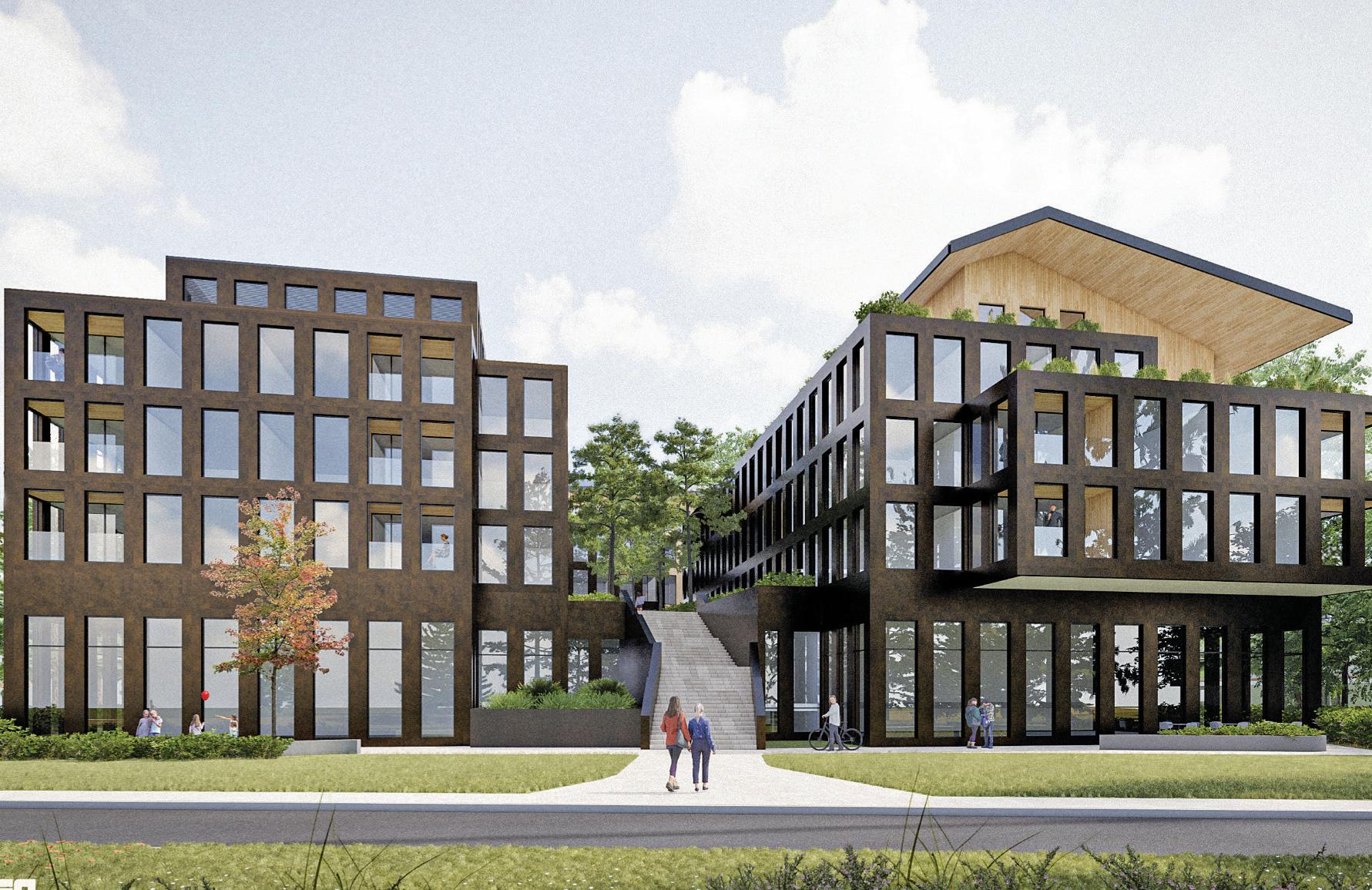 would be made up of two five-story buildings joined by a shared parking structure: A larger building of 66 units that would be available for sale; and a smaller building of 15 affordable rental units.