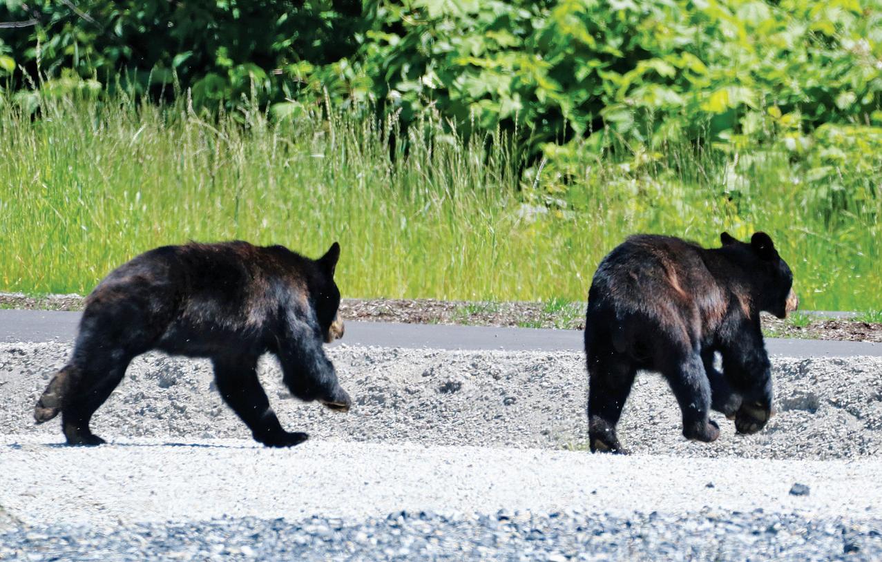 Black bears, their cubs and yearlings are out and about in town Be sure to keep a distance—use a long lens, if taking photos—and make sure trash is out of sight and smell around your home and work