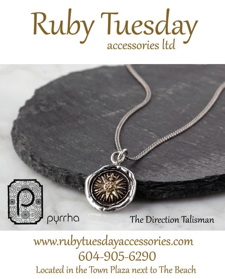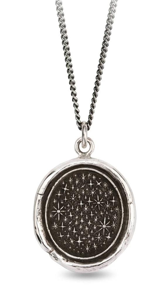 The expanse of stars on this talisman is symbolic of the cosmos within us. It is a comforting reminder that we are one with the universe and are connected to everything and everyone. Pyrrha Design inc. jewelry is sustainably handcrafted with 100 per cent recycled metals in Vancouver using antique wax seals and imagery from the Victorian era. Available at Ruby Tuesday $269.95