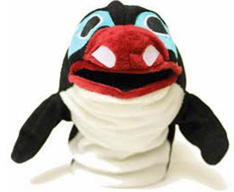 Children love the Splash the Orca hand puppet, designed by Chris Kewistep of the Bella Bella Nation.