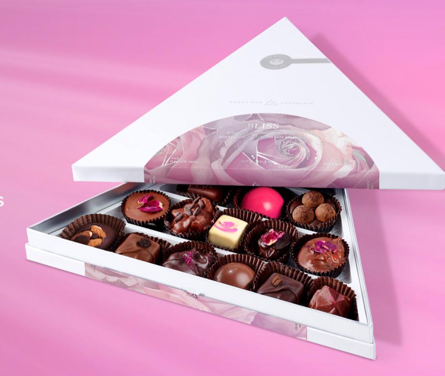 From the first bite to the last, the Bliss Collection is sure to please everyone, featuring berries, nuts and artisan chocolates curated by Rocky Mountain’s master chocolatier. Each box contains a: raspberry bomb, coconut cluster, rocky road cluster, tiramisu caramel trio, cranberry and orange caramel, blueberry caramel, strawberry meltdown, pink champagne meltdown, peanut butter cup, almond dome and cashew mogul dome. Available at Rocky Mountain Chocolate Factory.