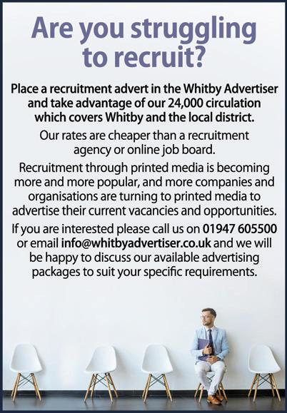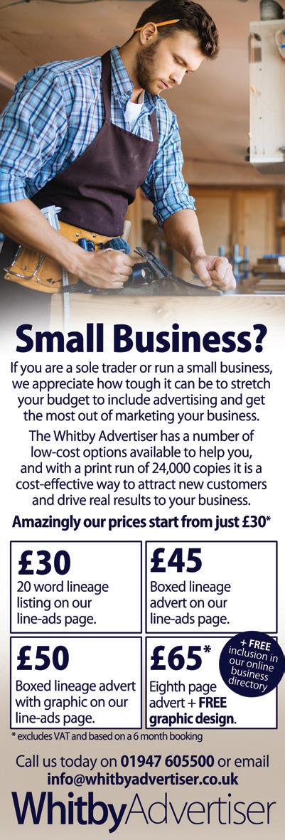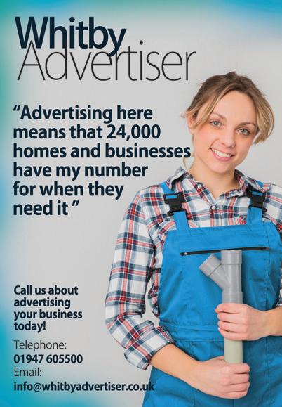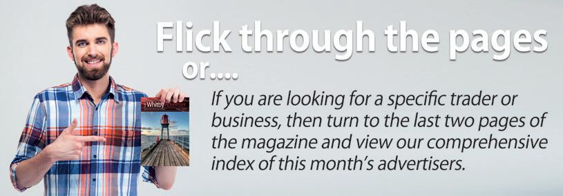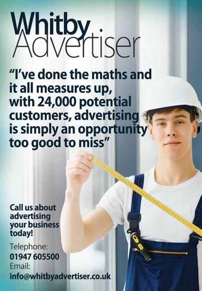 Copyright © Whitby Advertiser Ltd. No part of this publication may be reproduced or transmitted without permission in writing from the publisher. Requests for permission or further information should be addressed to the publisher. Published by Whitby Advertiser Ltd, PO Box 120, Whitby, North Yorkshire YO21 3ED. Company No: 05736318 | VAT No: 979 2029 82 All information in this magazine is published in good faith and cannot be reproduced without written permission. Artwork and copy is the responsibility of the advertiser. Whilst the publisher makes every effort to ensure that the businesses featured in this magazine are of the highest quality, we do not guarantee the services and products from any businesses featured. No liability will be accepted under any circumstances should any of the contents in this magazine be incorrect. Any complaints should be referred to Trading Standards, NYCC. The views expressed within the articles are not necessarily those of the publisher. All rights reserved. The paper used for the Whitby Advertiser is produced from guaranteed sustainable forests and carries the PEFC accreditation which is the European standard for tracking the timber from source to the final printed product. Further information can be found at www.pefc.org