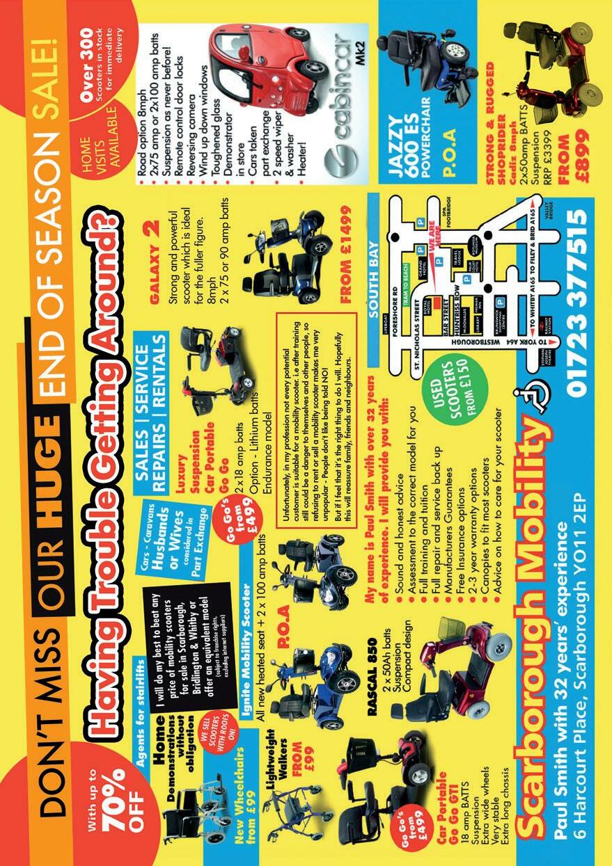 www.mdmobility.co.uk Guisborough 01287 635922 Northallerton 01609 776484 Huge Showroom • Inclusive Warranties • FREE Insurance • Part-Ex Welcome PROBABLY THE BEST MOBILITY SHOP IN THE NORTH EAST! A MILESTONE IN SCOOTER DESIGN BUILT TO PUSH THE LIMITS. INSIRED BY SOME OF THE LEADING DESIGNS IN THE MOTORCYCLE INDUSTRY. SPORT RIDER 8 MPH • 30 MILE RANGE