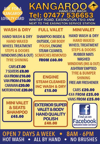 Car Sales 6 CT Autos ................................................................................. 75 Easington Service Station ................................................ 73 Kangaroo Car Wash ........................................................... 75 R.J.Valeting 75 Summerfield Garage ......................................................... 75 Whitby Tyre and Exhaust Centre Ltd .......................... 73