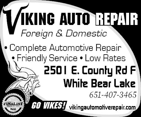 TUESDAY, MARCH 14, 2023 VOL. 41 NO. 22 www.quadcommunitypress.com $1.00 SUNSHINE WEEK: Local media play essential role PAGE 4 CIRCULATION 651-407-1234 circ@presspubs.com NEWS 651-407-1227 quadnews@presspubs.com ADVERTISING 651-407-1200 marketing@presspubs.com CLASSIFIED 651-407-1250 classified@presspubs.com PRODUCTION 651-407-1220 art@presspubs.com PRESORTED STANDARD U.S. POSTAGE PAID PERMIT NO. 9 CIRCLE PINES, MN Press Publications 4779 Bloom Avenue White Bear Lake, MN 55110 CHANGE SERVICE REQUESTED Meat Raffle Mon & Thurs 5:00PM @ Blue Heron Grill License number 03934-008 14725 Victor Hugo Blvd |Hugo 8001 Lake Drive Lino Lakes License number 03934-007 Pull Tabs 11:00AM to Close @ Blue Heron Grill & The Tavern on Main 767616 BEST OF THE PRESS 2022 of the Press Vadnais Heights 2022 of the Press 651-483-4055 WH Y C HOOSE US? Family owned and operated since 1975 Certified Expert Technicians Lifetime Warranty Collision & Mechanical Services Hail Damage Specialists www.fairwaycollisioncenter.com 125 E. Cty Rd. F • Vadnais Heights, 55127 F co ll is io n a a i rw Y an d au to moti ve 765480