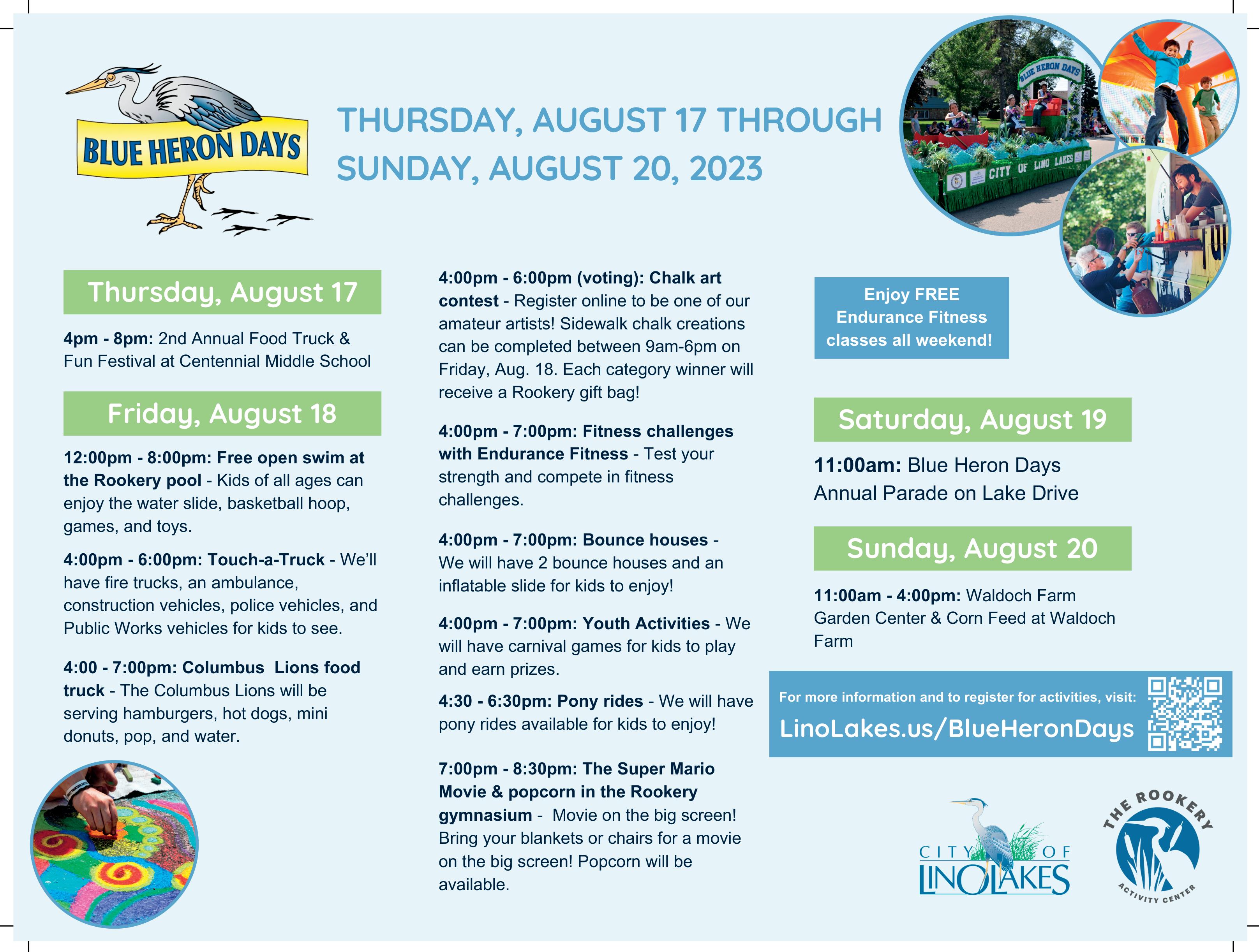 Contact: linolakes.us/407/Blue-HeronDays