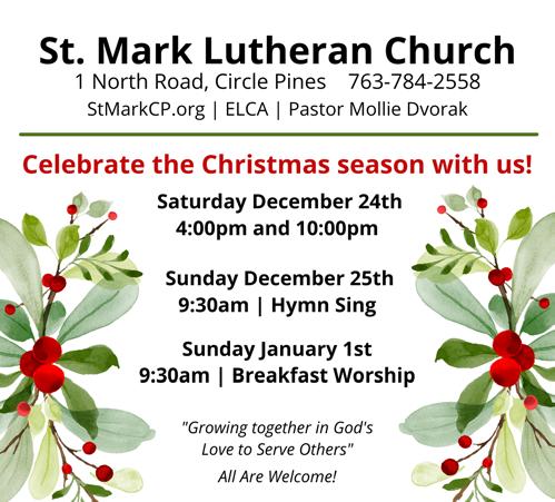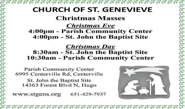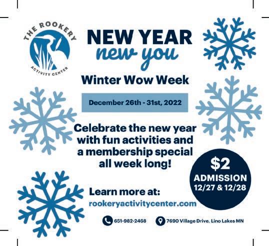NEWS 651-407-1227 quadnews@presspubs.com ADVERTISING 651-407-1200 marketing@presspubs.com CIRCULATION 651-407-1234 circ@presspubs.com CLASSIFIED 651-407-1250 classified@presspubs.com PRODUCTION 651-407-1239 artmanager@presspubs.com PRESORTED STANDARD U.S. POSTAGE PAID PERMIT NO. 9 CIRCLE PINES, MN Press Publications 4779 Bloom Avenue White Bear Lake, MN 55110 CHANGE SERVICE REQUESTED TUESDAY, DECEMBER 20, 2022 VOL. 41 NO. 10 www.quadcommunitypress.com $1.00 WE DON’T JUST PROMISE QUALITY... certified collision repair, hail damage repair and auto body services WE GUARANTEE IT, FOR LIFE! 24408 Greenway Ave | 651.464.6477 | www.BillsAutoBodyMN.com A FAMILY-OWNED AND OPERATED AUTO BODY SHOP IN FOREST LAKE, MINNESOTA. 760516 FDI-1916L-A © 2022 EDWARD D. JONES & CO., L.P. ALL RIGHTS RESERVED. > edwardjones.com | Member SIPC Bank-issued, FDIC-insured Call or visit your local financial advisor today. Minimum deposit APY* % Daniel Babbitt Financial Advisor 1-year 4.30 $100000 Think CDs are boring? That's the point FDI-1916L-A © 2022 EDWARD D. JONES & CO., L.P. ALL RIGHTS RESERVED. Bank-issued, FDIC-insured Call or visit your local financial advisor today. Minimum deposit APY* % * Annual Percentage Yield (APY) effective 10202022. CDs offered by Edward Jones are bank-issued and FDIC-insured up to $250,000 (principal and interest accrued but not yet paid) per depositor, per insured depository institution, for each account ownership category. Please visit www.fdic.gov or contact your financial advisor for additional information. Subject to availability and price change. CD values are subject to interest rate risk such that when interest rates rise, the prices of CDs can decrease. If CDs are sold prior to maturity, the investor can lose principal value. FDIC insurance does not cover losses in market value. Early withdrawal may not Daniel Babbitt Financial Advisor 9304 Lexington Ave North Circle Pines, MN 55014 763-780-7284 1-year 4.30 $100000 758938 Member SIPC CONTRIBUTED