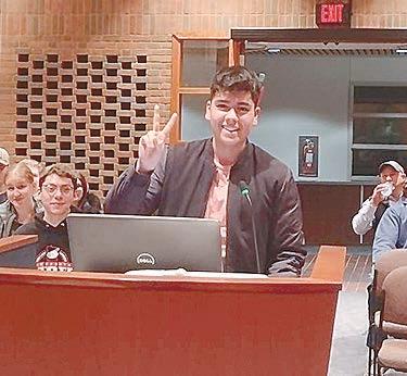 Samuel Murillo, a student at Centennial High School, volunteers to present an agenda topic (Watermark Park) at a recent City Council meeting.