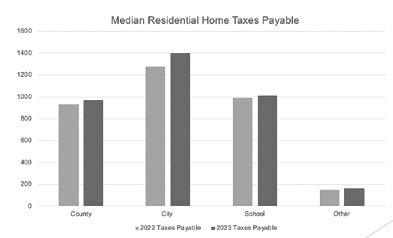 This graph shows how the 2023 taxes from various jurisdictions compare to 2022 for a median residential home.