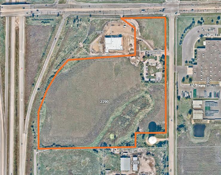 There will be a private street on the property to provide access to Lots 1 and 2. Approximately 22.85 acres lie to the south of the ALDI and Outlot B that will be used for future development.