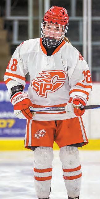 Grace Laager, senior left winger on Centennial/ Spring Lake Park hockey team, racked up 59 points (third on the team) with 16 goals and 39 assists, helping the Cougars win conference and section titles and place runner-up in the state tournament. The 5-foot-10 skater made the alltournament team and picked up her fourth allconference award. Laager finished her prep career with 224 points on 97 goals and 127 assists.