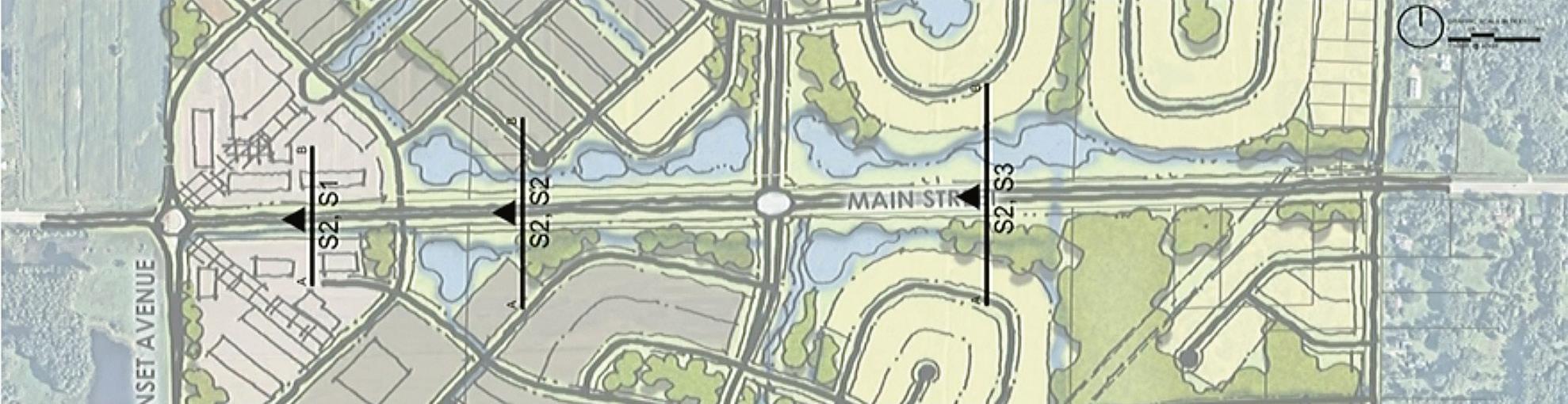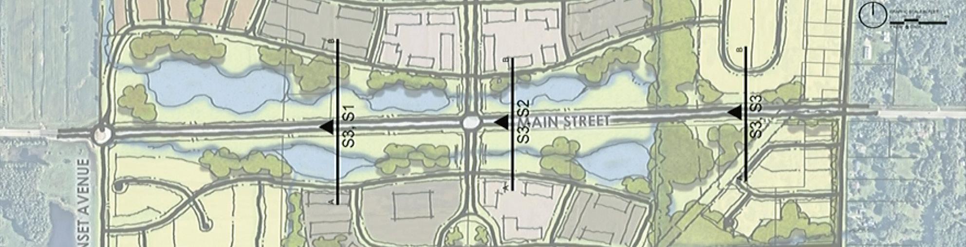 The visual for Scenario 3 showed most of the detention along Main Street with the residential and commercial density further away from Main Street. Adams said this concept allowed more open space.