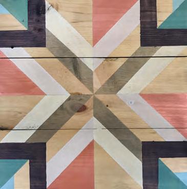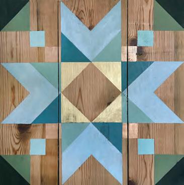 One of the geometric designs a student can choose during a barnyard quilt session put on by The Blue Fox. Based out of Detroit Lakes, The Blue Fox travels across the Twin Cities metro and western Wisconsin, conducting acrylic painting classes that focus on art as therapy. The reclaimed barn wood used as the canvas was locally sourced from a contractor in Hutchinson, Minnesota.