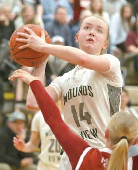 Mounds View squeezed past Roseville Area 49-47 in the first round of Section 5AAAA last Tuesday, then bowed out with a 77-41 loss to No. 3 ranked Maple Grove on Friday. The Mustangs had a 16-12 record. In the defensive duel against Roseville, Rylan Happel and Andrew Aitkin led with 13 points each while Reid Defeyter added 10 points and Dom Barrett eight. Micah Wiskus had 15 and Carter Brenden 13 for Roseville (15-12). Maple Grove (22-6) was led by Max Iverson with 25 points. Aitkin netted 17 points and Happel 14 for the Mustangs.