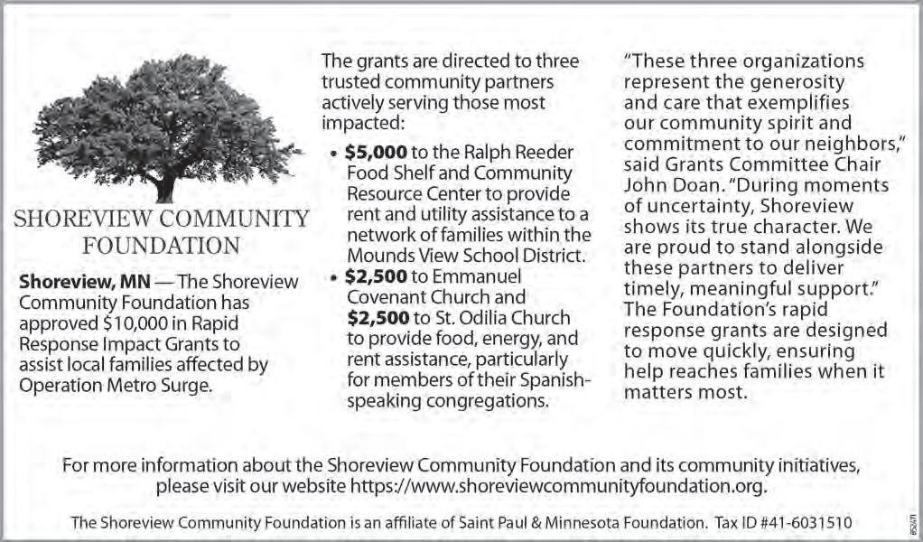 Editor Madeline Dolby can be reached at 651-407-1226 or shoreviewnews@ presspubs.com.