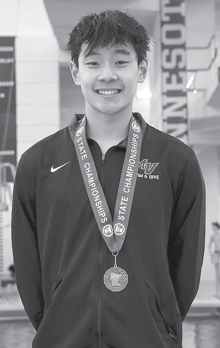 Mounds View’s other state qualifiers did not make the top 16 on Friday to advance. Luke Schmitzer was 17th in the 500 freestyle and 29th in the breaststroke. (The top 16 advance and score points.) The medley relay team of Bai, Schmitzer, Holden Then and Ben Lawrence placed 17th. The 200 free team of Bai, Peyton Kwan, Schmitzer and Lawrence placed 19th. Two junior high divers, freshman Micah Prindle and eighth-grader Charlie Hieb, got state experience but did not make the top 25.