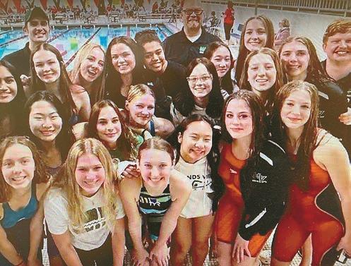 Also scoring points were Reese Bjorklund and Bria Mills, placing ninth and 11th, respectively, in diving; McKee, Samantha Wheeler and Olivia Landberg, placing 10th, 11th and 12th, respectively, in the 500; Maren Durand, ninth in backstroke and 10th in 100 free; Wheeler, Bury and Julia Front, placing ninth, 10th, and 13th, respectively, in indi vidual medley; Lydia Vranyes 10th In backstroke; Turkington and Olivia Landberg, 11th and 13th, respectively, in the 200 free; Easley, 12th in 50 free; Brynn Mills, 13th in 100 free; Song, 15h in both 50 and 100 free; and Anna Olson, 15th in butterfly.