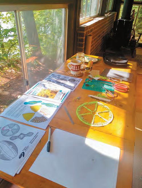During her residency, Jackson based several of her Wycinanki designs on microscopic algae; to this end, Jackson relied on help from station scientists to provide her with slides of the algae for her creations. “It was really interesting to hear those parallels between my existing form and techniques in the process,” said Jackson, “like, ‘how is scientific imagery communicated and visualized.’ It’s very exciting since I am a science nerd. Being able to look in really expensive microscopes is super fun for me.”