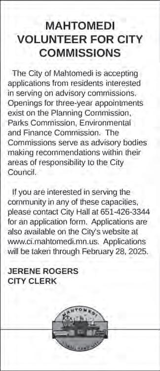 The Forest Lake Masons are accepting applications from charitable organizations to participate in one of the four community support fundraising events planned for later in the year. Organizations do not need to be in Forest Lake but must be in the surrounding area to be eligible. If interested, fill out an application by emailing an application request at ForestLakeMasons@gmail.com or download the application from the group website at www. forestlakemasons.com. All applications must be sent out no later than March 15.