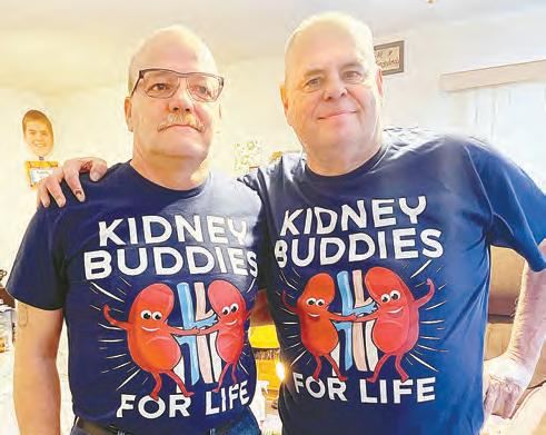 Pizza Man owner Farrell Tuohy, right, poses for a photo with his “kidney buddy.” If everything goes as planned, Jeff Engler plans to donate his kidney to Tuohy.