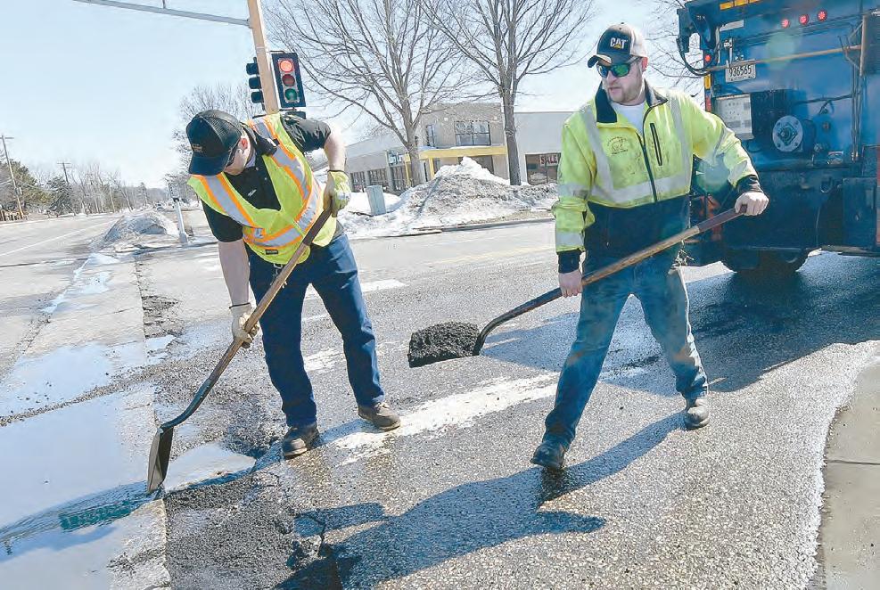 City of White Bear Lake Streets Working Foreman Mike Lillie and Streets Maintenance employee Joe Levine recently filled a string of potholes near the intersection of Linden Street and Co. Rd. E with hot patching material. The extreme snowfall and fluctuating temperatures are keeping crews busy on White Bear Lake streets. It should be noted that some area roads that appear to be pretty rough this spring, including Long Avenue, are actually under the jurisdiction of the county.
