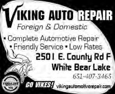 CIRCULATION 651-407-1234 circ@presspubs.com NEWS 651-407-1230 vadnaisheightsnews@presspubs.com ADVERTISING 651-407-1200 marketing@presspubs.com CLASSIFIED 651-407-1250 classified@presspubs.com PRODUCTION 651-407-1239 artmanager@presspubs.com WEDNESDAY, MARCH 29, 2023 VOL. 47 NO. 24 www.vadnaisheightspress.com $1.00 PRESORTED STANDARD U.S. POSTAGE PAID PERMIT NO. 9 CIRCLE PINES, MN Press Publications 4779 Bloom Avenue White Bear Lake, MN 55110 CHANGE SERVICE REQUESTED ARTS DISTRICT: Meet the new faces PAGE 16 • Family Owned and Operated • Dealership level service with personal feel! • Full service Foreign & Domestic Auto Repair. CELEBRATING 27 YEARS OF SERVICE IN THE WHITE BEAR AREA 3634 Scheuneman Rd. • White Bear Lake, MN • (651) 426-4640 OPEN: Monday – Friday • 8am-6pm Pod’s is your one stop shop for all your automotive needs. We offer full service auto repair, vehicle accessories and automotive detailing! > > > www.podstire.com < < < Ryan & Nicole Podewils MARCH SPECIALS! Any Service -Up to*Based on 10% of service. Some restrictions may apply. Exp. 4/30/23 $40 OFF 3634 Scheuneman Rd. • White Bear Lake • 651-426-4640 $20.00 Oil Change & Tire Rotation Community Relief Food Drive To help support our community and replenish our local food shelf we are offering an oil change and tire rotation for just $20.00 with a non-perishable food donation. Semi synthetic oil (up to 5 qts) Tire Rotation 21-point inspections • Top off all fluids. Up to 5 quarts semi synthetic oil. Most cars and light trucks. Some restrictions may apply. Exp. 3/31/23 768551 3.5” x 2.5” Maximum Font Size: 30 pt MKT-5894N-A > edwardjones.com Concerned about interest rates? Let's talk. Dan Perry AAMS™ Financial Advisor 4717 Banning Ave White Bear Lake, MN 55110 651-429-0522 768882 3.5” x 2.5” | Maximum Font Size: 30 pt MKT-5894N-A > edwardjones.com Concerned about interest rates? Let's talk. Dan Perry, AAMS™ Financial Advisor 4717 Banning Ave White Bear Lake, MN 55110 651-429-0522 3.5” x 2.5” | Maximum Font Size: 30 pt MKT-5894N-A > edwardjones.com Concerned about interest rates? Let's talk. Dan Perry, AAMS™ Financial Advisor 4717 Banning Ave White Bear Lake, MN 55110 651-429-0522 Concerned about interest rates? Let’s talk