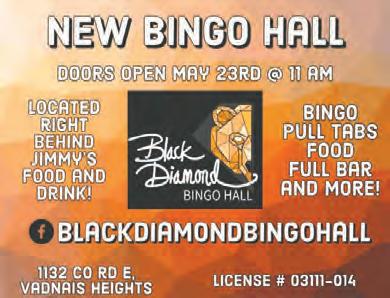 CIRCULATION 651-407-1234 circ@presspubs.com NEWS 651-407-1230 vadnaisheightsnews@presspubs.com ADVERTISING 651-407-1200 marketing@presspubs.com CLASSIFIED 651-407-1250 classifid@presspubs.com PRODUCTION 651-407-1239 artmanager@presspubs.com WEDNESDAY, MAY 3, 2023 VOL. 47 NO. 29 www.vadnaisheightspress.com $1.00 SCHOOL SPIRIT: Students learn business acumen at retail store PAGE 2 PRESORTED STANDARD U.S. POSTAGE PAID PERMIT NO. 9 CIRCLE PINES, MN Press Publications 4779 Bloom Avenue White Bear Lake, MN 55110 CHANGE SERVICE REQUESTED $30 00 OFF STOP SAVE & • Brakes Expires 5/31/23 See store for details PER AXLE • Alignment • Select Batteries Napa & Interstate $10 00 OFF ASE Certified Mechanics 772604 To Protect our Customers and Staff we are following all safety procedures. 3955 Highway 61, White Bear Lake, MN (651) 426-4518 THE BEST SERVICE • SELECTION • VALUE OIL, FILTER, LUBE, 4 TIRE ROTATION $3399 $49 99 Full Syn $79 99 Ams Oil Offer Excludes + 2.00 shop supplies/2.00 waste oil filter disposal. Oil filter: up to 5 qts. of SW30. Rotate 4 tires. Check air pressure. 20 pt. Safety Inspection. Must Have Coupon. Exp. 5/31/23 See store for details UP TO Temporary Hours: 7:30am - 5pm M-F • 7:30am - 2pm Sat • GPMINNESOTAWHOLESALE.COM $100 00 OFF Wheel & Tire purchase On Sale Now see store for details UP TO NEW BINGO HALL NEW BINGO HALL OPEN MAY 23RD @ 11AM RIGHT BEHIND JIMMY’S FOOD AND DRINK! 1132 Co Rd E, Vadnais Heights Lic # 03111-014 Bingo • Pull tabs • food • full bar 772345 SEE LAKE LEVEL, PAGE 3